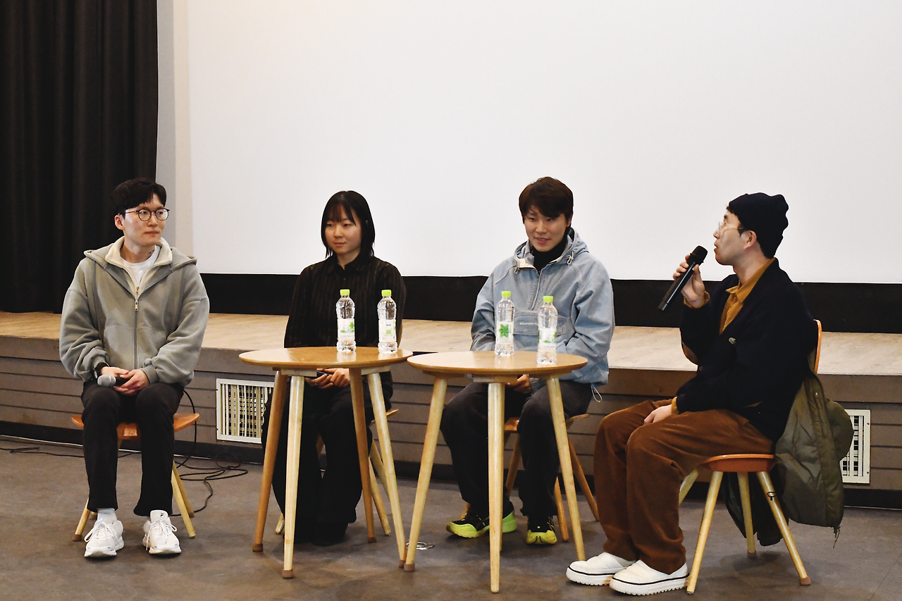 진명현 : 세 감독님 모두 차기작을 들고 이 자리에 와주셨네요. 그 작품들도 언젠가 좋은 기회에 신영극장에서 상영할 수 있게 되는 날이 오면 좋을 것 같고, 또 이렇게 12월 30일 날 3편의 영화를 같이 튼 건 어마어마한 인연이니까 앞으로 영화 작업 필드에서 좋은 영향들을 서로 끼치면서 지내시면 좋을 것 같아요. 그럼 이제 영화 3편에 대한 관객분들의 관람 후기 감상 아니면 작품에 대한 질문을 들어보려고 합니다.